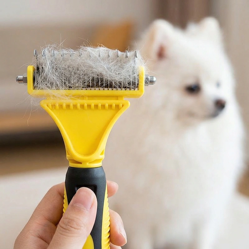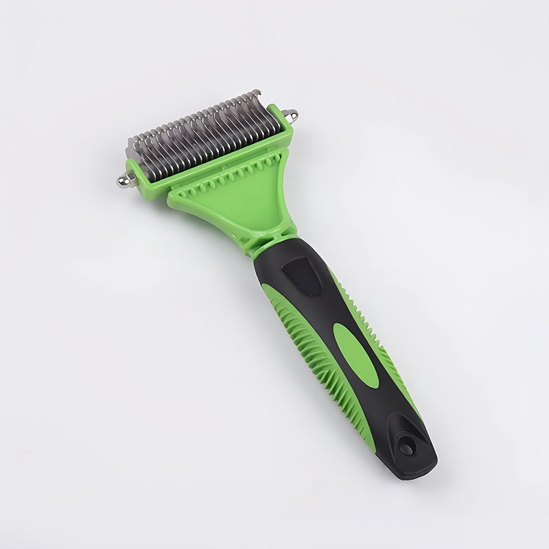 Zweiseitiger Entfilzungsrechen aus Edelstahl für Hunde – Entwirrungs- und Enthaarungswerkzeug