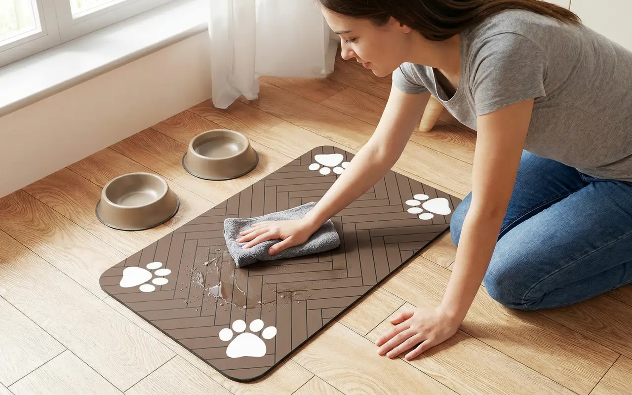 Ich liebe es, dass die Matte nicht verrutscht. Selbst mit zwei durchrasenden Hunden bewegt sich nichts und das Füttern geht ganz einfach. Die Reinigung ist kein Problem.