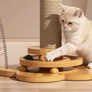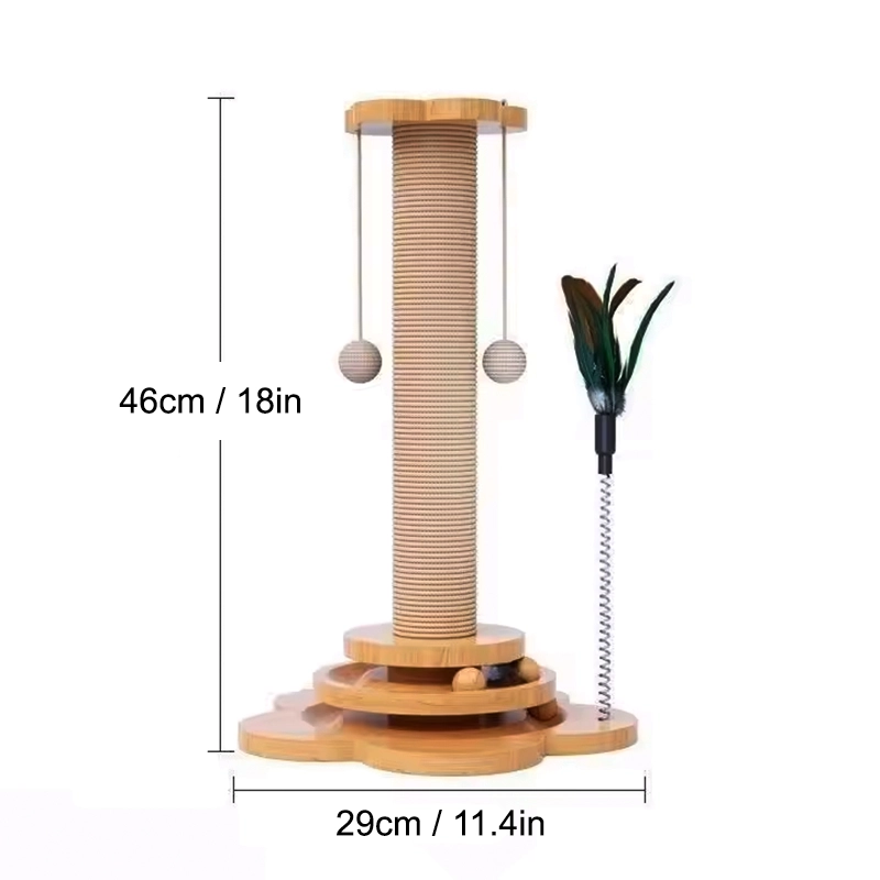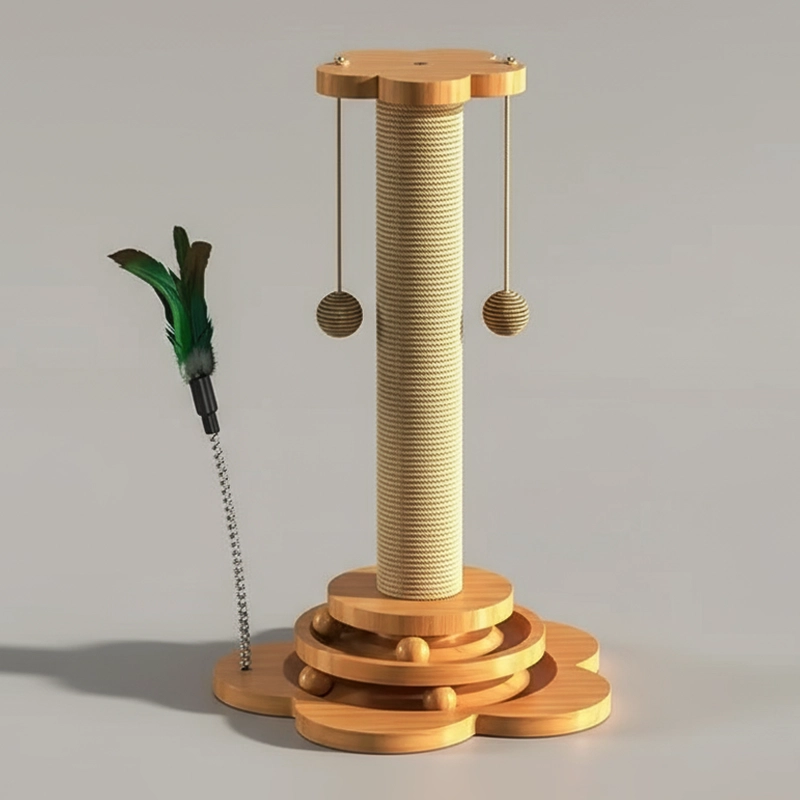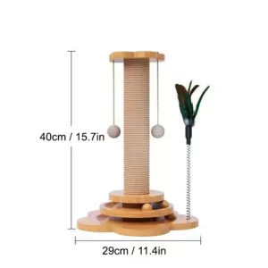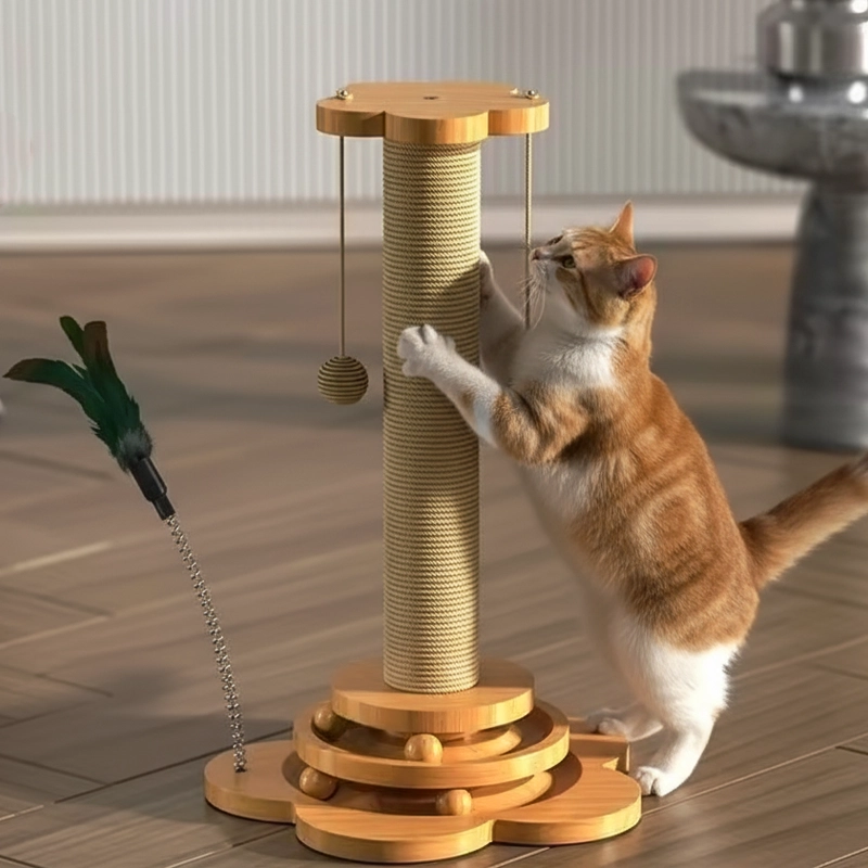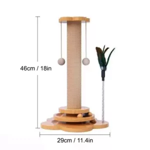 Katzenkratzbaum aus Holz mit Sisal und hängenden Bällen