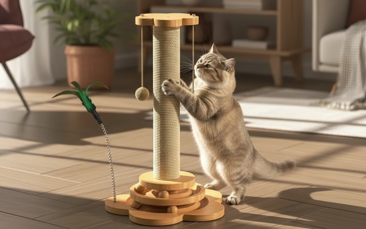 Robustes Holz und Sisal sorgen für eine lange Lebensdauer bei aktiven Haustieren. Kratzen, Klettern und Spielen bleiben jeden Tag sicher.